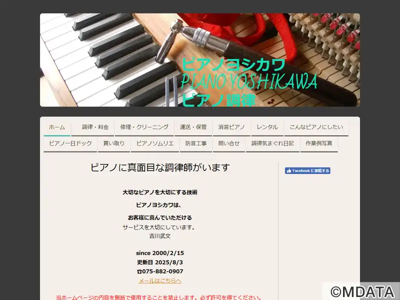 京都市を拠点とするピアノ調律・修理工房。1994年に開業。(社)日本ピアノ調律師協会会員がピアノに関するすべての作業を丁寧に行う。ピアノのコンディションを整える「ピアノ一日ドック」や消音ユニット取付、ピアノ運送・保管、レンタル、中古ピアノの販売からアフターケアまでトータルにサポート。京都を中心に滋賀、大阪、奈良、兵庫にもサービスを提供し、音律や部品の調整、音色や設置場所の管理方法などもアドバイス。