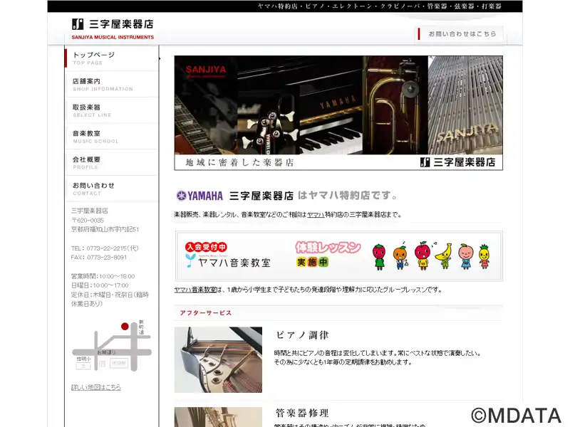 京都府福知山市にある総合楽器店。明治4年に創業、明治後期から楽器販売を始めた老舗。ギター、アンプ、管楽器、メンテナンス商品、楽譜、音楽小物など幅広い音楽関連商品を扱っている。ヤマハ特約店として、ピアノ、エレクトーン、クラビノーバなどを展示販売。ピアノ調律や管楽器修理などの専門的なアフターサービスも行い、楽器レンタルサービスも提供している。子供向けのヤマハ音楽教室やオリジナルレッスンも開講している。