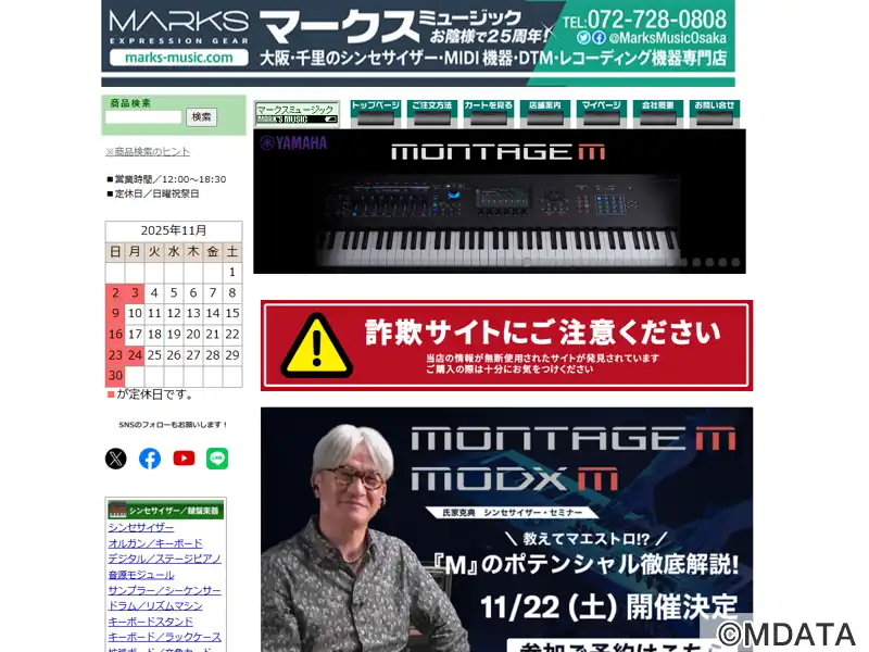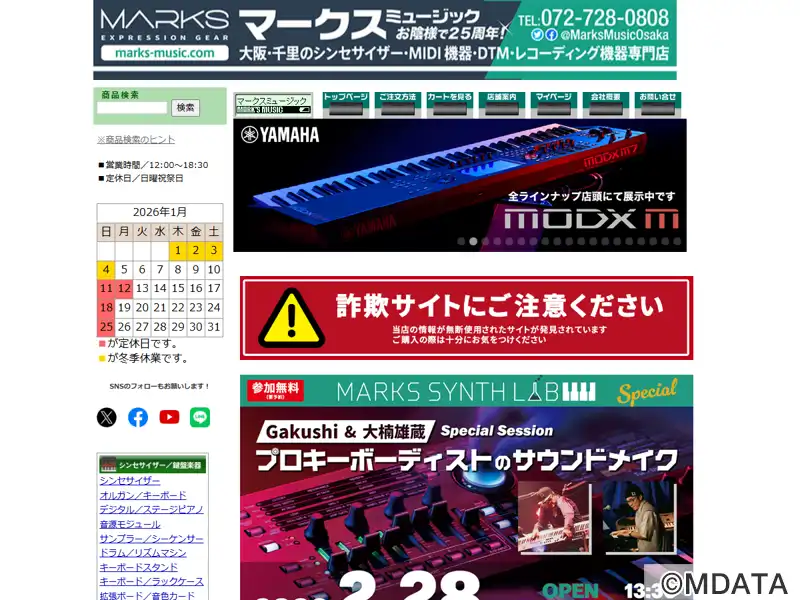 2021年5月、日本橋から箕面船場(千里中央)に移転リニューアル。シンセサイザー・MIDI・DTM・レコーディング機材の専門店。ライブステージをイメージした店内にはキーボード・シンセ常時100台以上展示。DJ・VJ機器、PA機器、デジタル楽器、新品、アウトレット品、中古品まで豊富な品揃えで、店頭展示品はすべて試奏・視聴可。機材の買い替え・相談など、お気軽にお立ち寄り下さい。