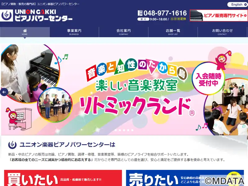埼玉県さいたま市にあるユニオン楽器が運営するピアノ販売・買取専門店。グランドピアノから電子ピアノまで幅広いラインナップを揃え、新品・中古あわせて約1500台を取り扱う。独自の再生工場で専門スタッフが修理や整備を行い、高品質なリニューアルピアノを提供。また、経験豊富な調律師が在籍し、最適な音環境を整える調律・修理サービスを提供している。ピアノの買取や引越しにも対応。リトミックランドさいたま教室併設。