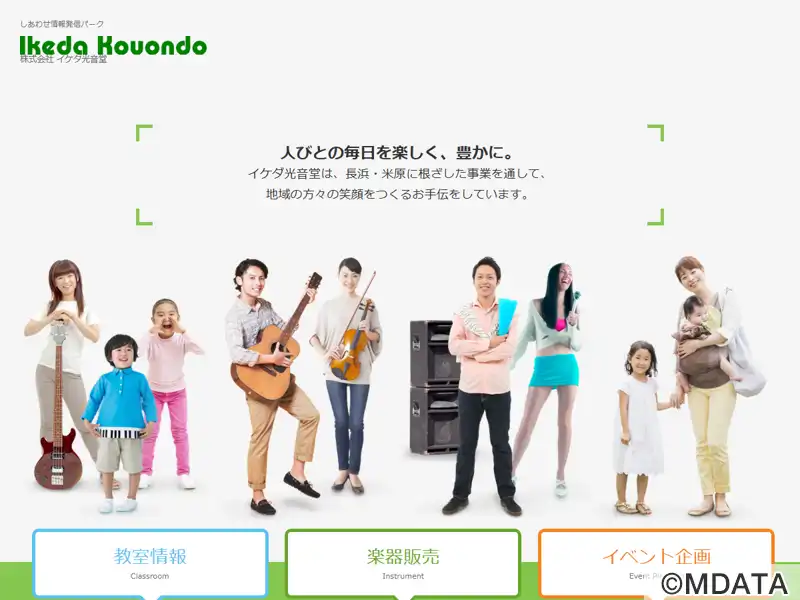 長浜市に本社を置く、1936年創業の総合楽器店。幅広い楽器の販売から音響機器、防音室の取り扱い、修理・ピアノ調律、楽器レンタルまで、多様な音楽関連サービスを提供している。また、ヤマハ音楽教室や英語教室、プログラミング教室を含む多彩な教育プログラムを運営し、創造性と独創性を育む学びの場として地域社会に貢献している。さらに、子育て支援や福祉サービス事業などを通じ、地域共生を目指した運営を行なっている。