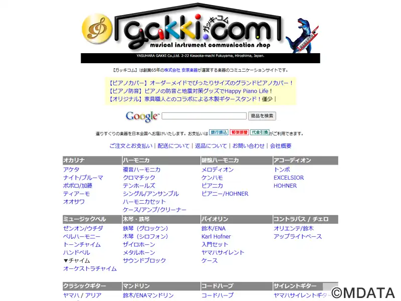 福山本通商店街にある1961年創業の楽器専門店。とおり町ストリートガーデンの中程に位置し、楽器・楽譜販売、音響機器レンタル、ピアノ調律・楽器修理などを行う。2階には、レッスンやセミナー、練習などに利用できるレンタルスペースが2部屋あり、セミコンピアノとアップライトピアノを完備。レッスンスタジオとしてピアノ、ギター、ハーモニカ、オカリナ等の音楽教室を行っている。オンラインショップ「ガッキコム」運営。