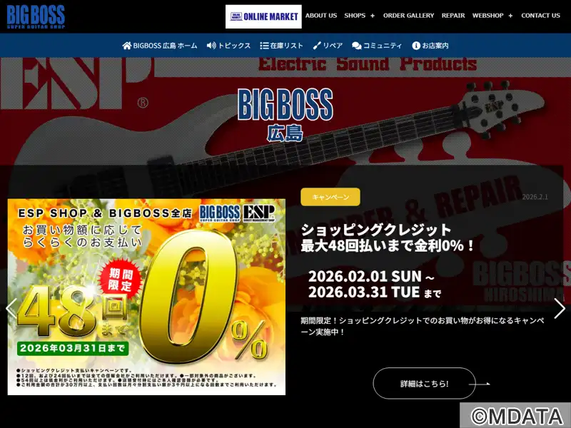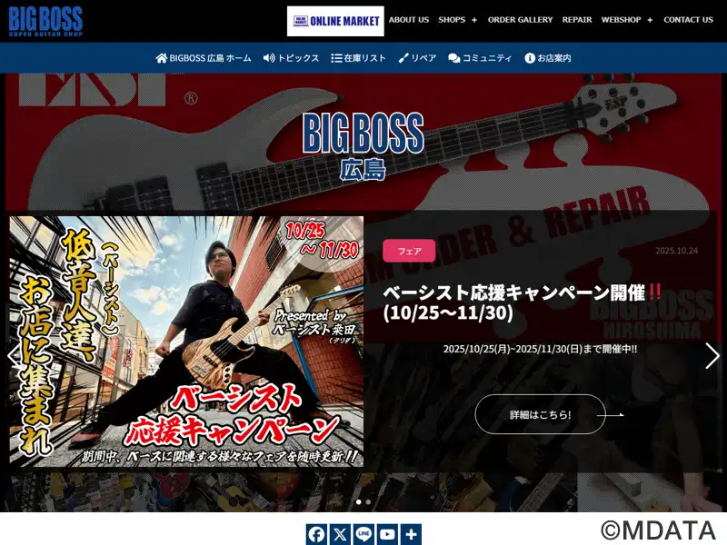 広島市中区に位置する西日本最大級の圧倒的な在庫数を誇る、広島随一のギターショップ。ESPの直営店で、2フロア構成の店内には、国内外の有名ブランドギター・ベースを展示。アンプ・エフェクターも充実のラインナップが揃っており、ESPオフィシャルリペアマン常駐のリペアブースも完備。県内唯一のフルオーダーメイドコーナーで、完全オリジナルの一本を作成することができる。初心者からプロ用まで、ギタリスト御用達の店。