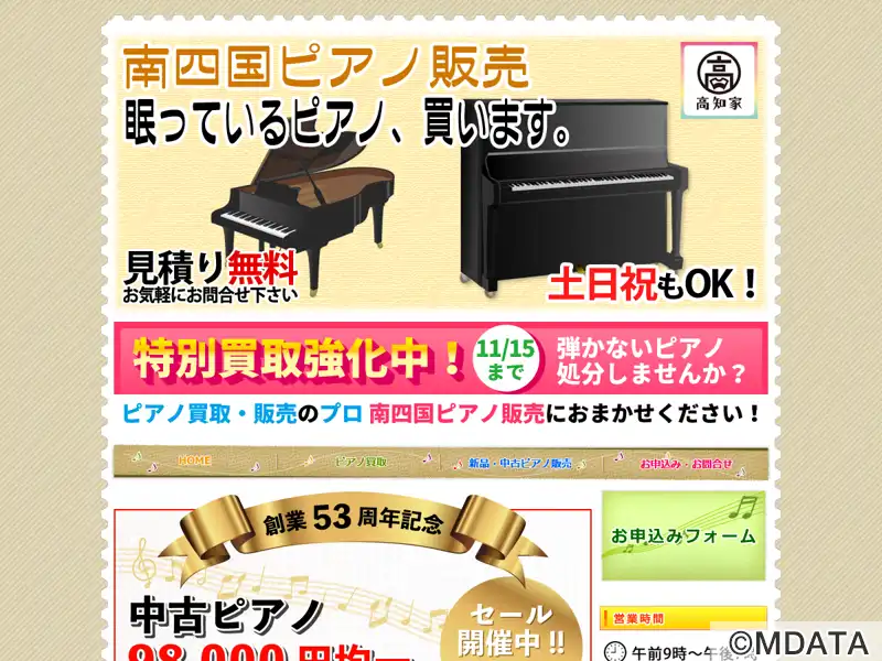 高知市越前町にある老舗のピアノ専門店。ヤマハ、カワイ、ローランドなど全メーカーの商品を取り扱い、中古ピアノ、デジタルピアノの販売・買取や新品販売を行っている。1975年からは、「南四国音楽教室」としてピアノ科とリトミック科のレッスンセンターを運営。ピアノ科ではピアノ実技のほか、ボイストレーニングコース、弾き語りコースを開講。リトミック科では、リトミック指導者を育成するための講習などを実施している。