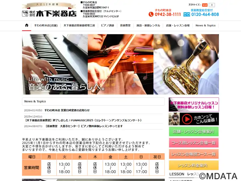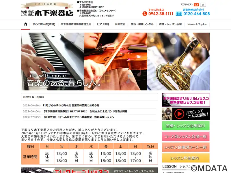 大正12年創業、久留米市の老舗楽器販売店。国道3号線沿い、瓦屋根の木造2階建て。2016年まで「すわの町店」は音楽教室、練習スタジオ、レンタルホールを併設したLM楽器店として運営、2017年1月より音楽教室「すわの町センター」のみの営業となる。2019年7月、天神町の本社ビル老朽化に伴い、本店を移転し「すわの町本店」としてリニューアル。楽器販売、修理・メンテナンス、音楽教室を展開。専用駐車場5台。