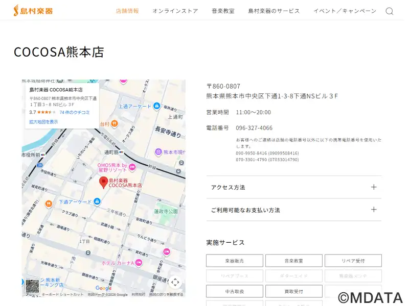 | 名称 | 島村楽器 COCOSA熊本店 |