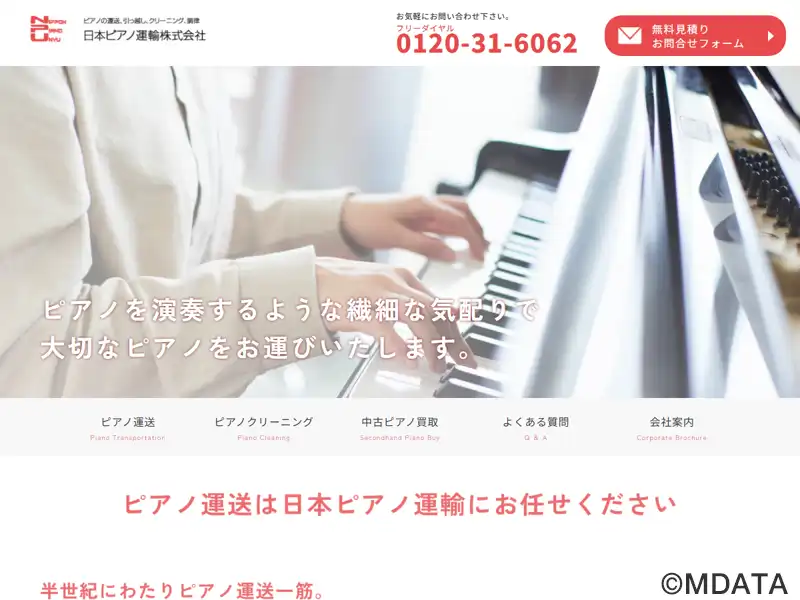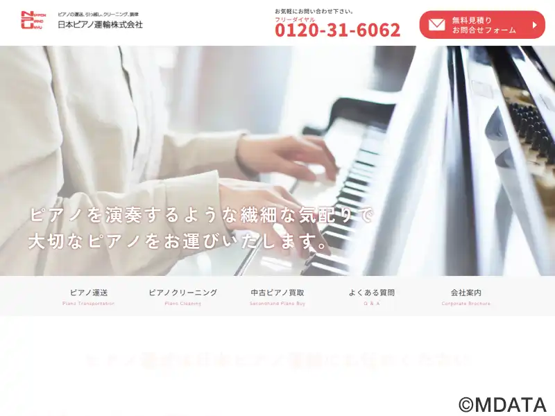 千葉市にあるピアノ運送・クリーニング・調律・買取の専門事業者。創業以来、100万台以上のピアノや電子ピアノを扱う実績を持つ。親切かつ丁寧な運送スタッフが繊細な気配りでピアノを運送すると同時に、熟練のピアノ職人によるクリーニング・調律などのメンテナンスも行う。ピアノシュレーターを利用しての防音、防振、地震対策も提供する。また、不要になったピアノの買取や回収も可能。全国全エリアに対応している。