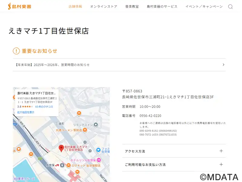 | 名称 | 島村楽器 えきマチ1丁目佐世保店 |