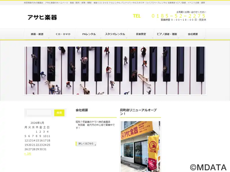 秋田県能代市に1932年に創業した老舗楽器店。ピアノ、キーボードなどのLM楽器、管楽器、和楽器など多様な楽器や楽譜を展示販売。ピアノの調律や楽器の修理など、アフターサービスも充実しており、地域の音楽文化を支える。練習スタジオの貸し出しや、地元で開催されるイベントや祭りへの楽器やPA音響機器のレンタル、オペレーターの派遣も行う。個人のペースに合わせた楽しいピアノ教室も開講。畠町店と柳町店を運営している。