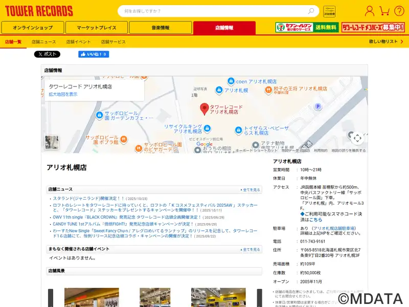 タワーレコード アリオ札幌店