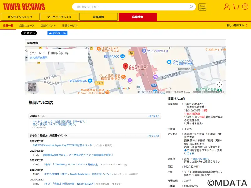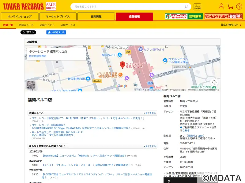 福岡天神・駅直結のファッションビル福岡パルコ6階に2015年3月オープンした音楽・映像ソフトショップ。260坪の売り場に約130,000枚のアイテムを揃えている。洋楽・邦楽、インディーズ、不動の名盤からベスト盤、今話題の1枚まで、豊富な在庫に、試聴機も充実した提案型ミュージックショップ。店内イベントスペースで、人気アーティストのリリースイベント、特典会、やミニライブが開催される人気スポット。