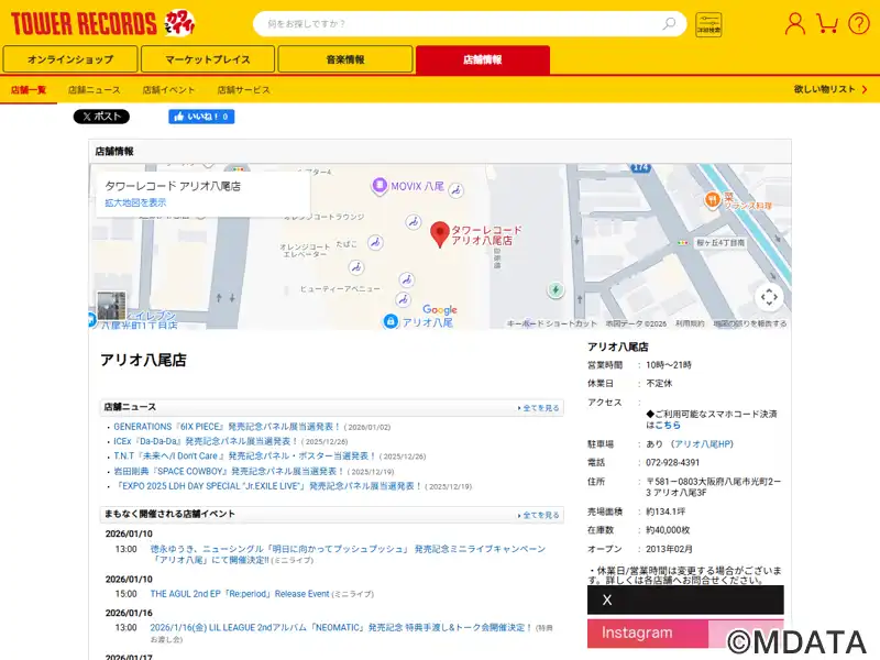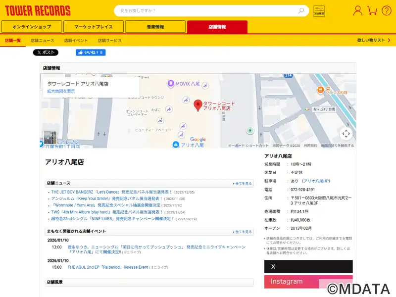 大阪八尾市にある約170の専門店が集まるショッピングセンターアリオ八尾店3階に2013年2月オープンした大型CDショップ。約134坪の売り場に約40,000枚のアイテムを揃えている。国内盤、輸入盤、最新作から往年の名盤までオールジャンルの豊富な在庫と、各ジャンル専門バイヤーがセレクトした豊かな品揃えが魅力。特に大人のJ-POP、大阪エリアで人気の高いJ-PUNKやJ-REGGAEの取扱いを強化している。