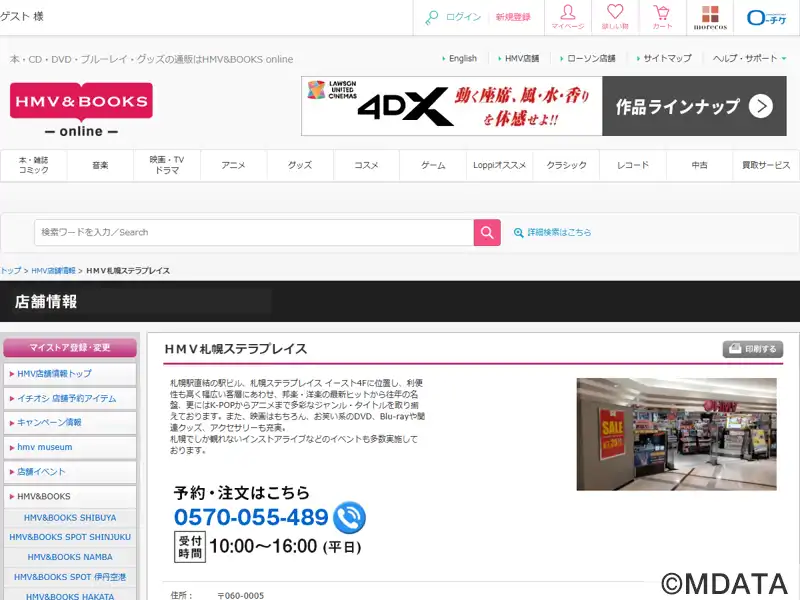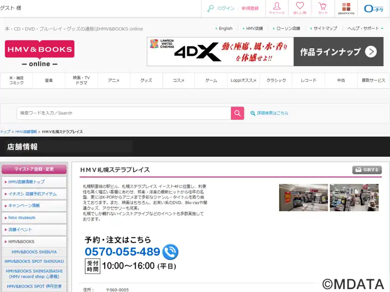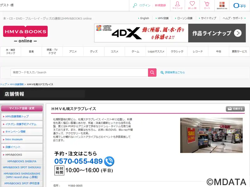 札幌駅直結のJRタワーの大型ショッピングモール札幌ステラプレイスに、2003年3月6日オープンした音楽と映像ソフト専門店。株式会社ローソンエンタテインメントが運営する。邦楽・洋楽の最新作から、往年の名盤まで、豊富な品揃えでコアな音楽ファンからファミリー層まで、全世代のエンターテインメントライフをサポートしている。店内イベントスペース「hmv museum 札幌」で、インストアイベントも多数実施している。