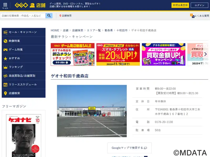 青森県十和田市にあるレンタル・販売・買取を行うアミューズメント・メディアショップ。DVD・ブルーレイ、CD、コミックのレンタル、新品・中古ゲームの販売買取、トレーディングカードの販売、スマートフォンやAV機器、家電アクセサリーも取扱う。邦楽・洋楽ロック&ポップス、ジャズ、クラシック、演歌、アニメ、ドラマ、お笑いなど、幅広いジャンルのソフトが揃っていて、ポケットマネーで気軽に楽しめる。駐車場50台あり。