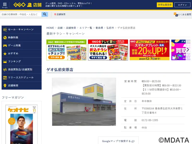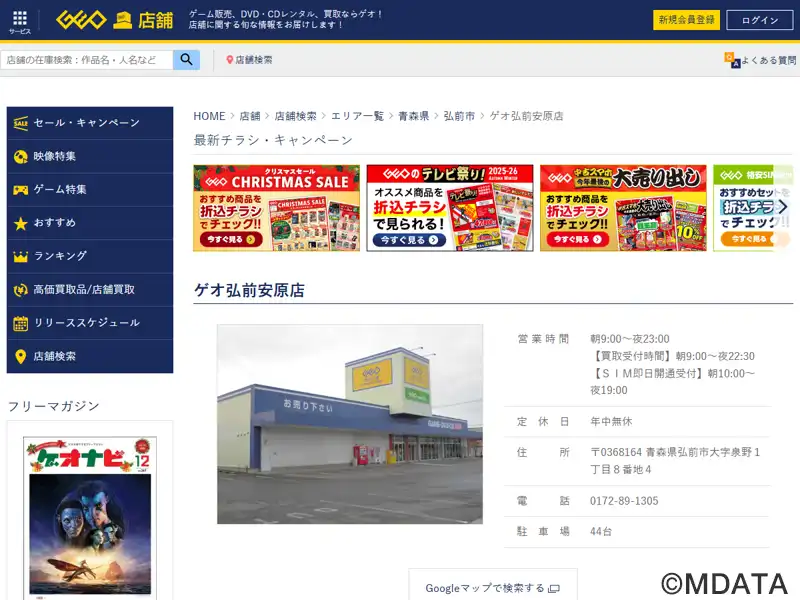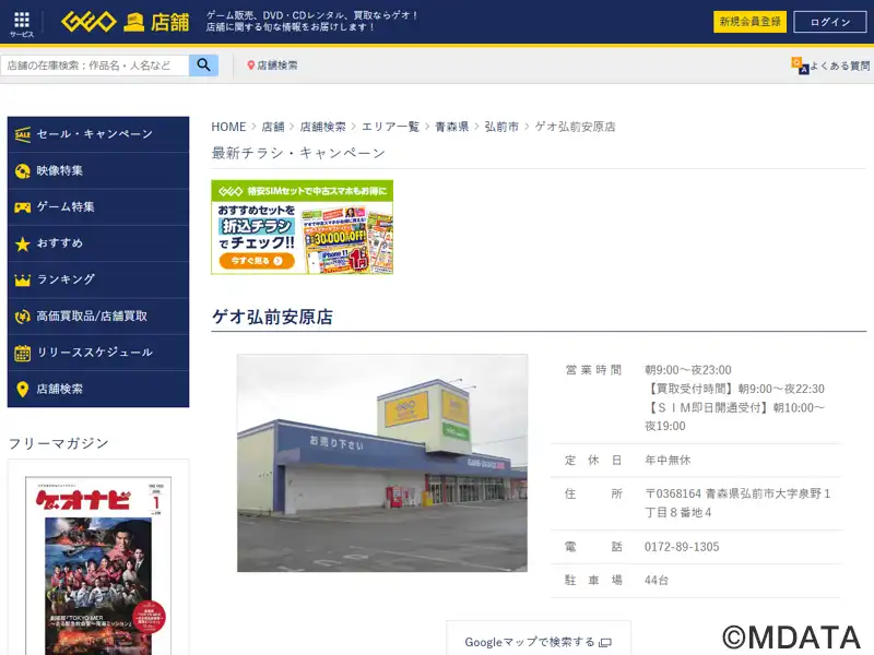 青森県弘前市にあるレンタル・販売・買取を行うアミューズメント・メディアショップ。DVD・ブルーレイ、CDのレンタル販売買取、コミックのレンタル、新品・中古ゲームの販売買取、トレーディングカードの販売、スマートフォンやAV機器、家電アクセサリーも取扱う。どこよりも安くをモットーに、話題の新作・準新作も格安でレンタル販売している。ポケットマネーで気軽に楽しめるアミューズメントソフトを提供。駐車場44台あり。
