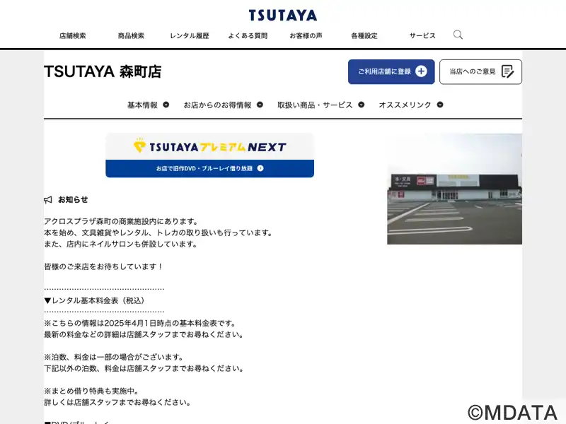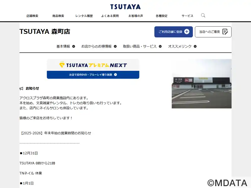 | 名称 | TSUTAYA 森町店 |