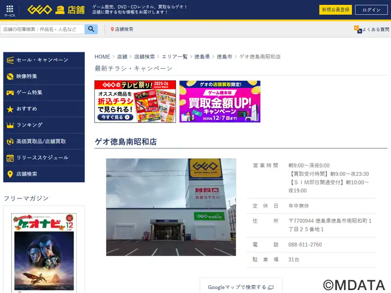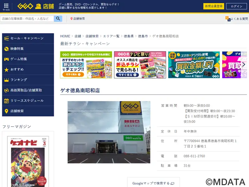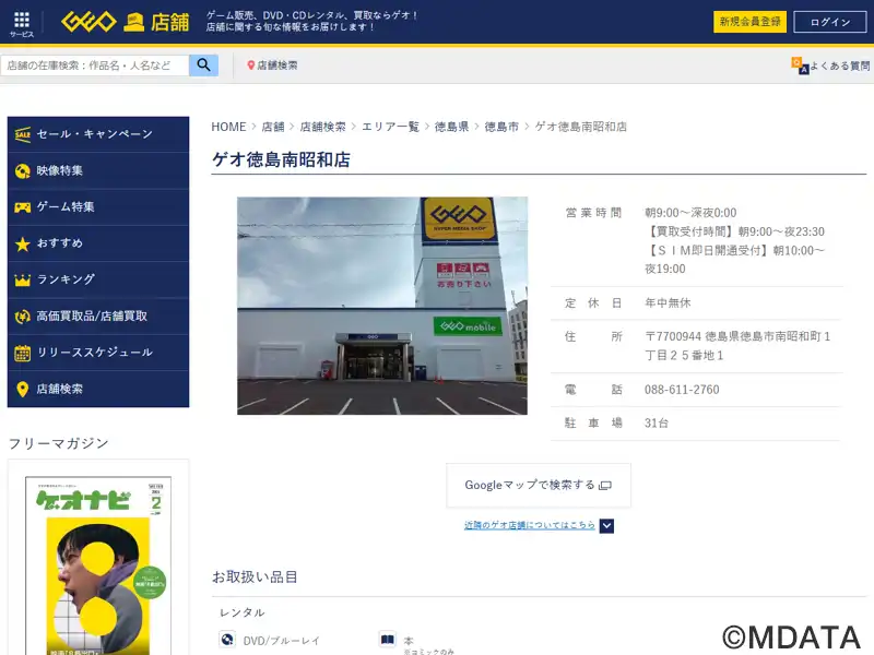 徳島市にあるレンタル・販売・買取を行うアミューズメント・メディアショップ。DVD・ブルーレイ、コミックのレンタル、新品・中古ゲームの販売買取、中古パソコン買取、トレーディングカードの販売、スマートフォンやAV機器、家電アクセサリーも取扱う。幅広い客層に向けてポケットマネーで楽しめるアミューズメントソフトを提供する。2023年3月30日で徳島沖浜店を閉店、31日にゲオ徳島南昭和店として移転オープン。