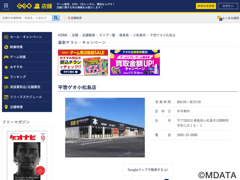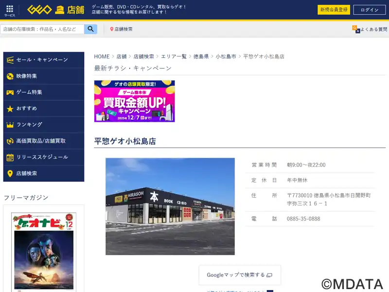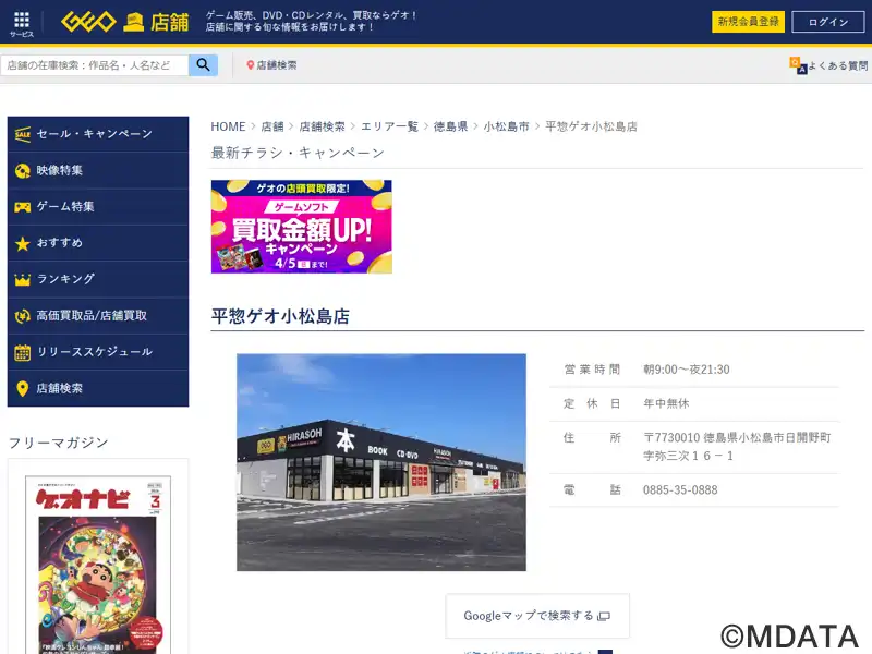 2000年7月に徳島県小松島市に開店した、江戸時代に創業した株式会社平惣が運営するレンタル・販売・買取ショップ。DVD・ブルーレイのレンタル販売買取、CDのレンタル販売、コミックのレンタル、新品・中古ゲームの販売買取を行っている。最新作から往年の名作まで、幅広い客層に向けて、気軽に楽しめるエンターテインメントを提供している。レンタル会員募集中。書籍や文房具を扱う「平惣小松島店BOOK館」も併設している。