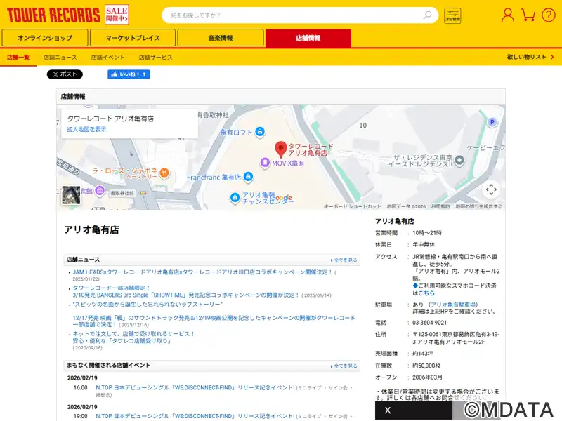 タワーレコード アリオ亀有店