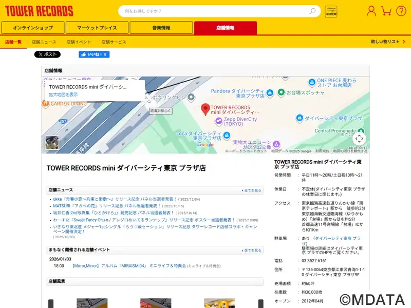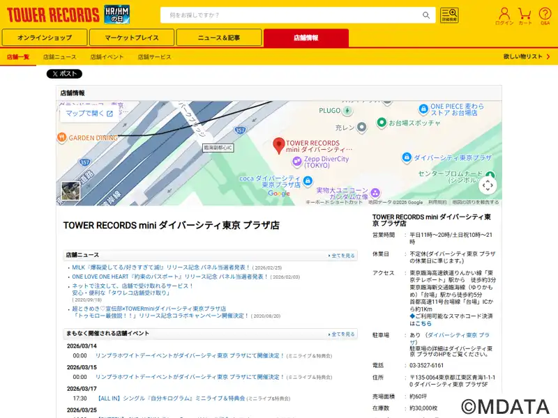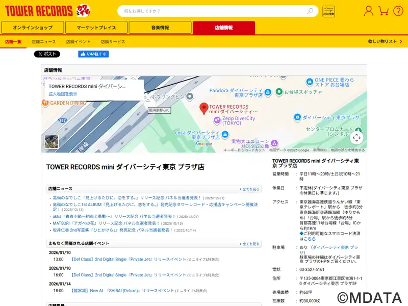 | 名称 | TOWERminiダイバーシティ東京 プラザ店 |