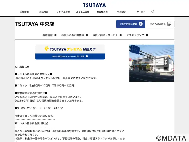 愛媛県松山市の松山中央通りにあるTSUTAYA中央店。1989年7月に(株)マツダが運営するフランチャイズ店として開業し、2014年には全国優秀店舗に選出された。1階では書籍やコミック、レンタルに加え、コスメや食品雑貨を展開。2階はDVD、CD、ゲームのレンタルコーナーで、ゆったりと作品を選べる空間が特徴。2階のレンタルスペースは、地域コミュニティの交流の場として機能。地元に根ざしたエンタメ拠点。