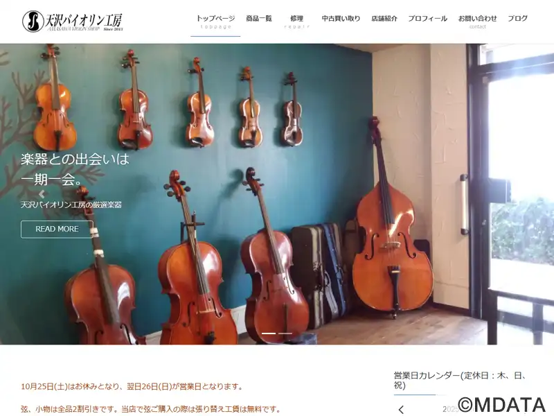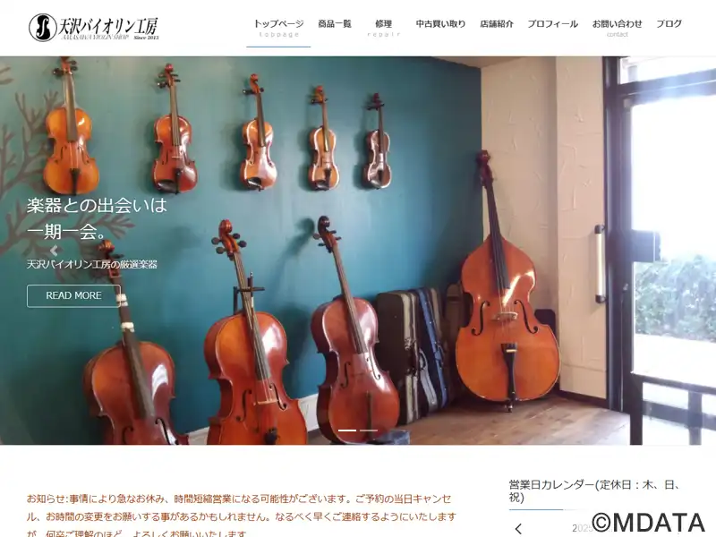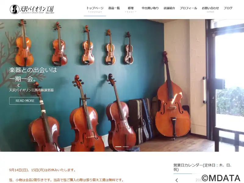 埼玉県蕨市にある弦楽器専門の工房。バイオリン、ビオラ、チェロ、コントラバスを対象に、修理・販売・製作を行っている。弦やケース、小物類も幅広く取り揃えている。毛替えなどの修理は予約制で、即日対応も可能。エレキバイオリンの修理やピックアップの取り付けにも対応しており、技術力の高い職人と直接相談できるのが特徴。他店で購入した楽器の持ち込みにも対応。製作教室も開催していて、自分だけの楽器作りに挑戦できる。