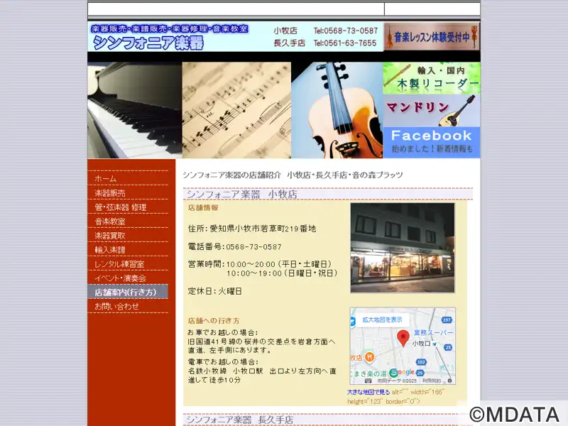長久手市西浦の図書館通りにある楽器店。国内外さまざまなメーカーの楽器と楽譜を豊富に揃えている。特に管楽器は、常駐するリペア技術者が入念に点検・調整した上で販売し、修理や毛替え、アフターサポートも充実。定期的に展示会や管楽器調整会を開催している。併設のシンフォニアミュージックスクールでは、ピアノやバイオリン、管楽器、ドラム、ギターなど多彩なコースがあり、レッスン室のレンタルが可能。