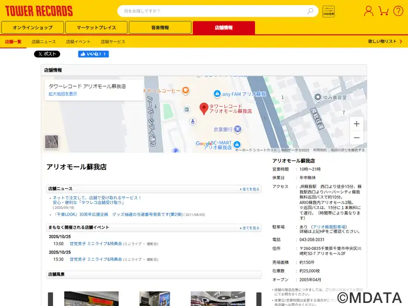 千葉市中央区のハーバーシティ蘇我にあるショッピングセンター、アリオ蘇我2階に2005年04月オープンした大型CDショップ。この店舗では、150坪の売り場に約25,000枚のアイテムを揃えている。コアな音楽ファンからファミリー層までを対象にすた幅広い品揃えで、多数のタイトルの試聴が可能となっている。1階の屋外イベント広場でミニライブやサイン会などのイベントも開催。ネットで注文して店鋪受け取り可能。