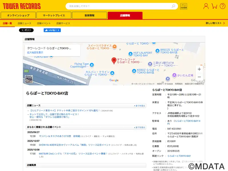 名称 | タワーレコード ららぽーとTOKYO-BAY店 |