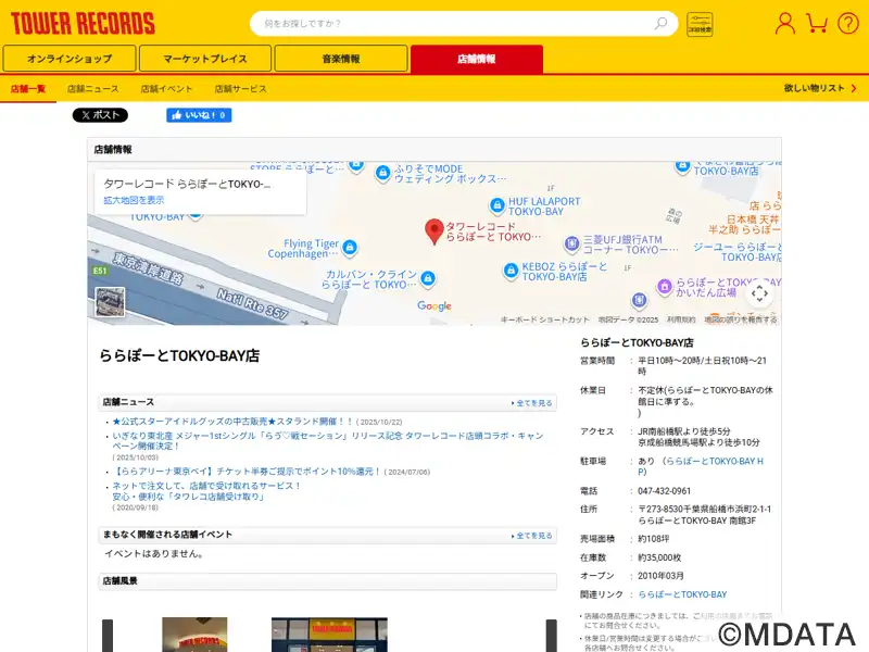 | 名称 | タワーレコード ららぽーとTOKYO-BAY店 |