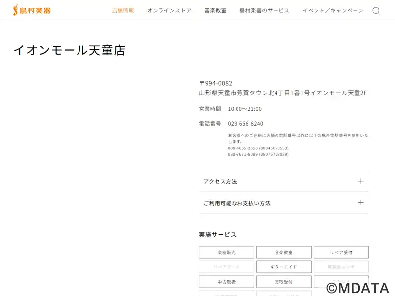 天童市芳賀タウンに2014年3月オープンした県内最大のイオンモール内にある総合楽器店。ギターや電子ピアノ、電子ドラム、管弦楽器、楽譜、関連アクセサリーなど多数品揃え。店内に併設された音楽教室では、グランドピアノ室でのピアノレッスン、キッズギターやドラムなど多彩なコースを開講。練習スタジオレンタルも可能で、参加型イベントやビギナーズセミナー、サークルなども開催している。天童南駅から徒歩5分。