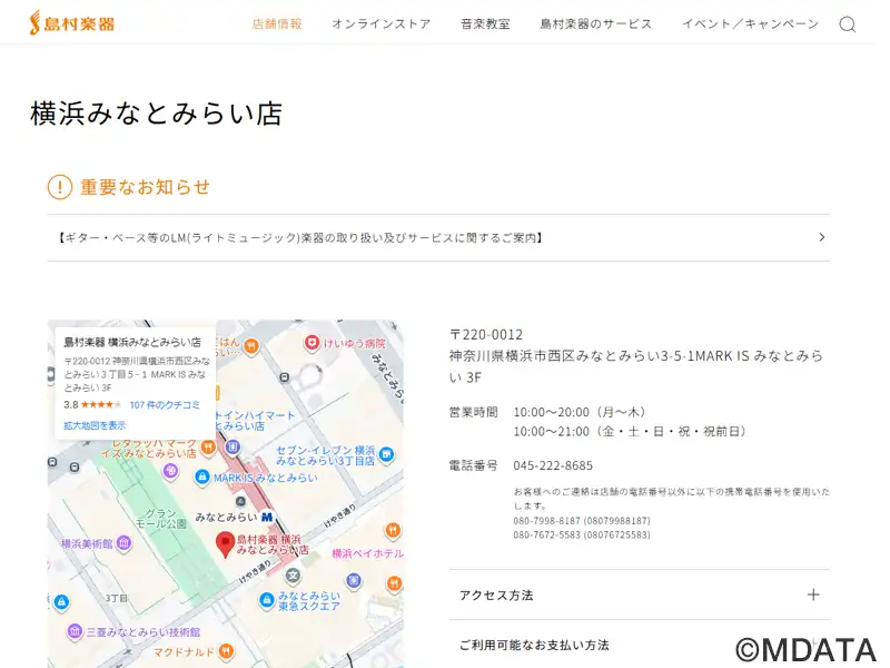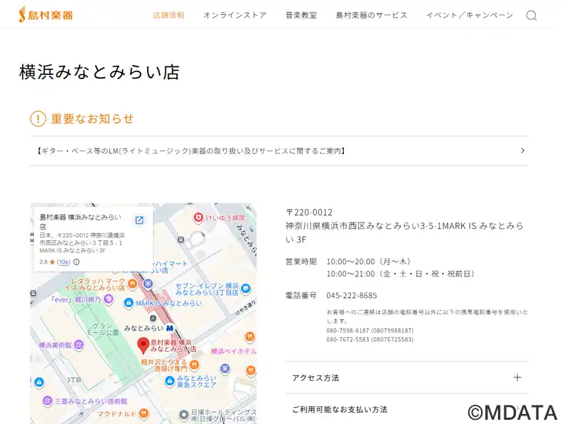 | 名称 | 島村楽器 横浜みなとみらい店 |