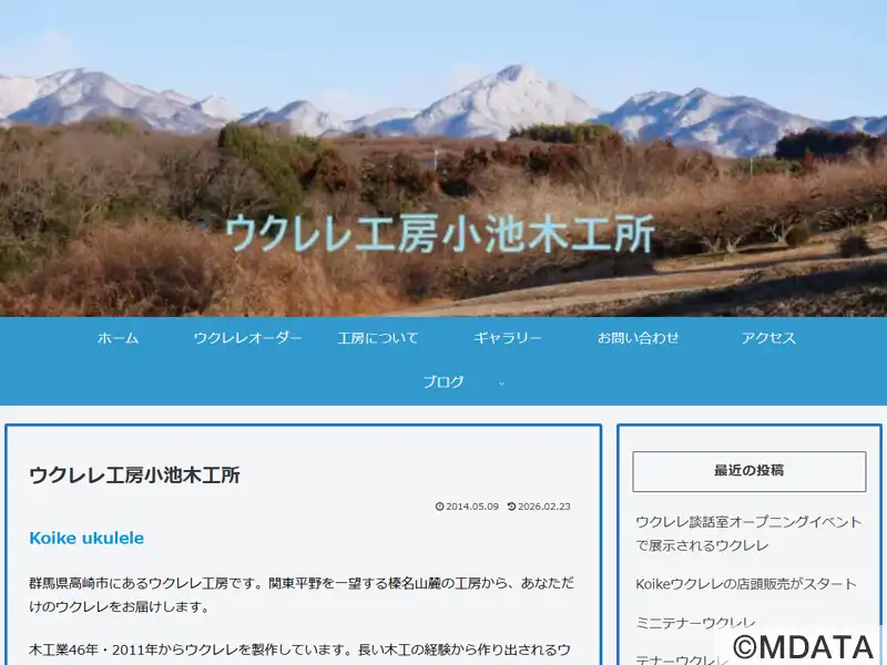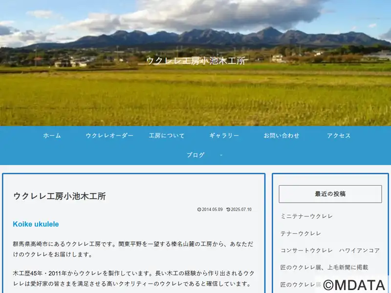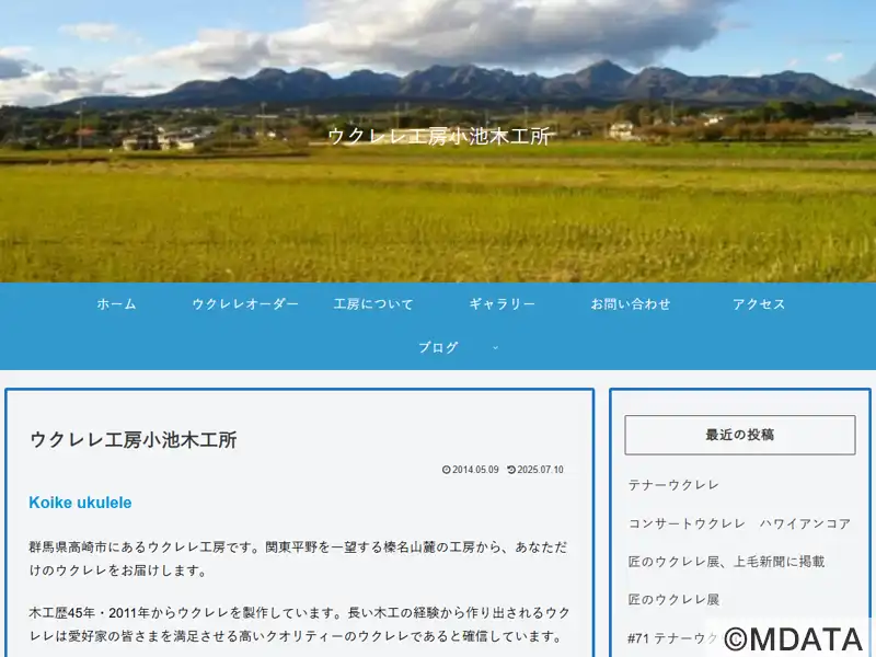 群馬県高崎市の榛名山麓に位置する手作りウクレレ専門工房。40年以上の木工経験を持つ職人・小池剛司氏が、伝統技術と現代のニーズを融合させ、一人ひとりの希望に合わせたウクレレを丁寧に製作している。ソプラノ、コンサート、テナーサイズに対応し、素材選びや仕様の相談にも親身に応じている。自然豊かな環境で生まれるウクレレは、初心者からベテランまで幅広く支持され、個性とこだわりが詰まった一本として愛されている。