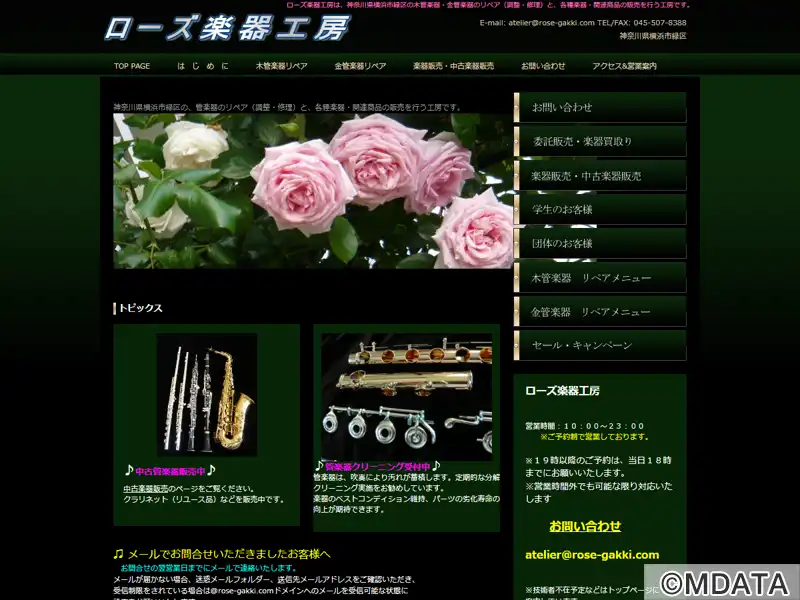 横浜市緑区にある管楽器のリペア(調整・修理)と、楽器・関連商品の販売を行う工房。楽器の状態を細かく点検して最適なリペア内容を提案し、納得いただいた上で作業を進める。また、正しい楽器の取り扱い方法などについても丁寧に説明する。リペア保証を付けており、リペア後に不具合が発生した場合や、リペア内容に満足いただけなかった場合にも対応している。買い取り、委託販売も行い、完全予約制で営業している。