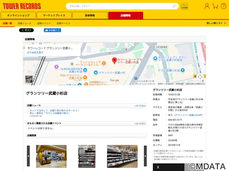 名称 | タワーレコード グランツリー武蔵小杉店 |