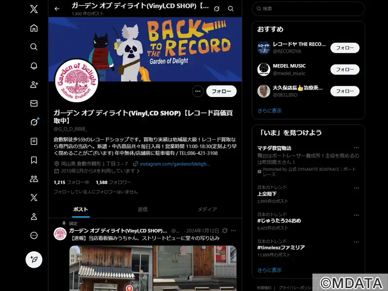 旧グリーンハウス倉敷店。2022年4月、1974年創業の老舗レコードショップ「グリーンハウス」倉敷店が「ガーデンオブディライト」に店名変更。ソウル・ファンク、レアグルーヴ、ブレイクビーツ、ジャズ、ロック、ポップ、和モノ、ヒップホップ、クラブ系、中古アナログから新品&新譜まで豊富な品揃え。全国レコードショップ出張アナログフェアも要注目な、岡山音楽ファン御用達のお店。P有り