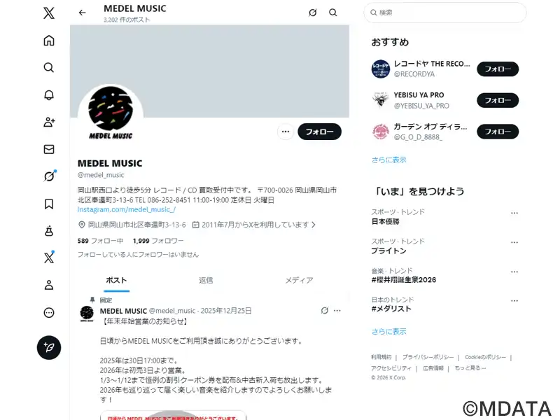 | 名称 | MEDEL MUSIC |