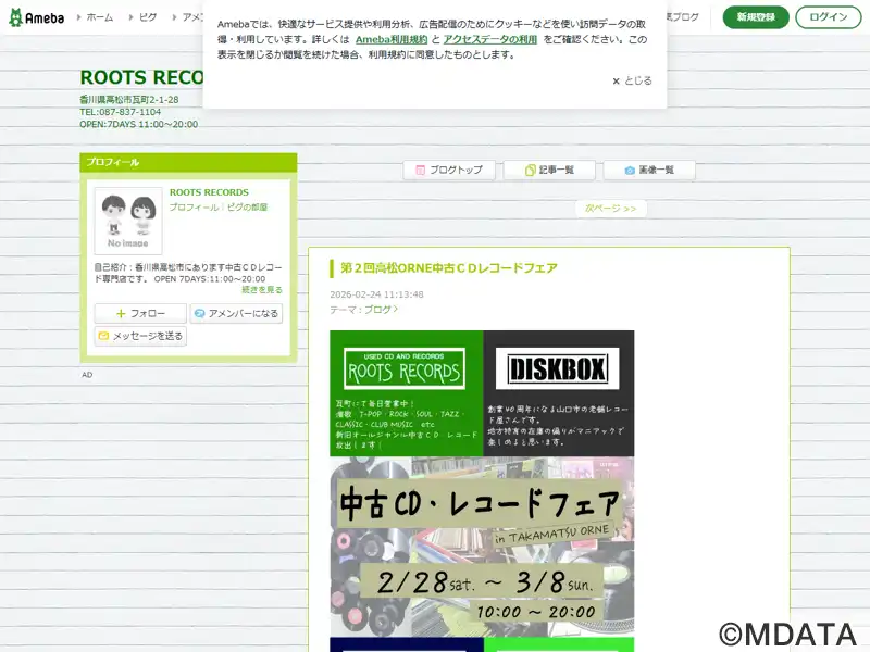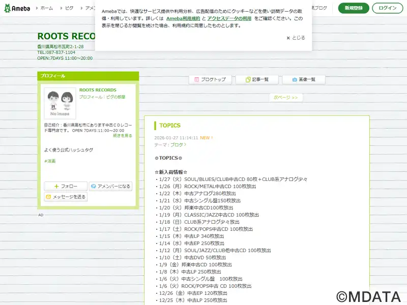 高松市瓦町にある中古CD・レコード専門店。四国高松の地域に根ざしたショップで、店内には懐かしの音楽ソフトが、店内にところ狭しと並べられている。ロック・メタル・パンクからポップ、ジャズ、ワールド、ヒップホップ・日本語ラップ、歌謡曲まで、国内外オールジャンルを豊富に在庫している。毎年恒例の「高松中古CDレコードフェア」を主催しており、全国ゲストレコード店による店内フェアや県外出張セールも定期的に実施。