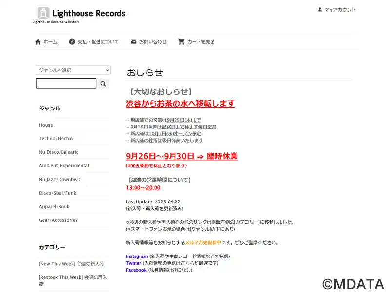 千代田区お茶の水にあるレコードショップ。2025年10月、渋谷から移転リニューアル。House、Nu Disco、Balearic、Technoなどのダンスミュージックを専門に取り扱い、店内ではヴィンテージ・スピーカーのクリプシュホーンが心地よい音空間を演出。国内外のDJが訪れることでも知られており、2008年の開業以来、HOUSEミュージックの魅力を伝え、Vinylの魅力を伝えている。
