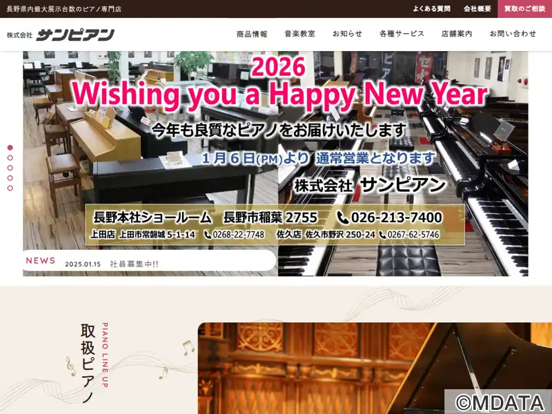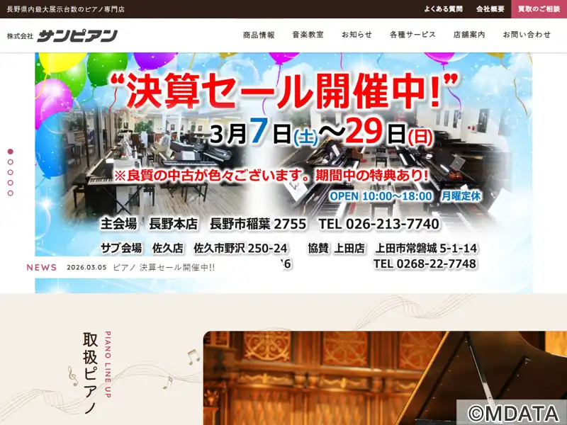 1991年、上田市に開業したピアノ工房。STEINWAY&SONSの長野県正規特約店であり、2006年にはスタインウェイ工房も開設された。スタンウェイ、シゲル・カワイ、ヤマハ、ローランド電子ピアノなど国内外の有名ブランドの新品・中古ピアノを豊富に取り揃える。また、楽譜販売や、ピアノ調律、メンテナンスなどのアフターサービスも充実。ピアノレッスンも開講しており、幼児から大人まで幅広い年齢層を対象としている。