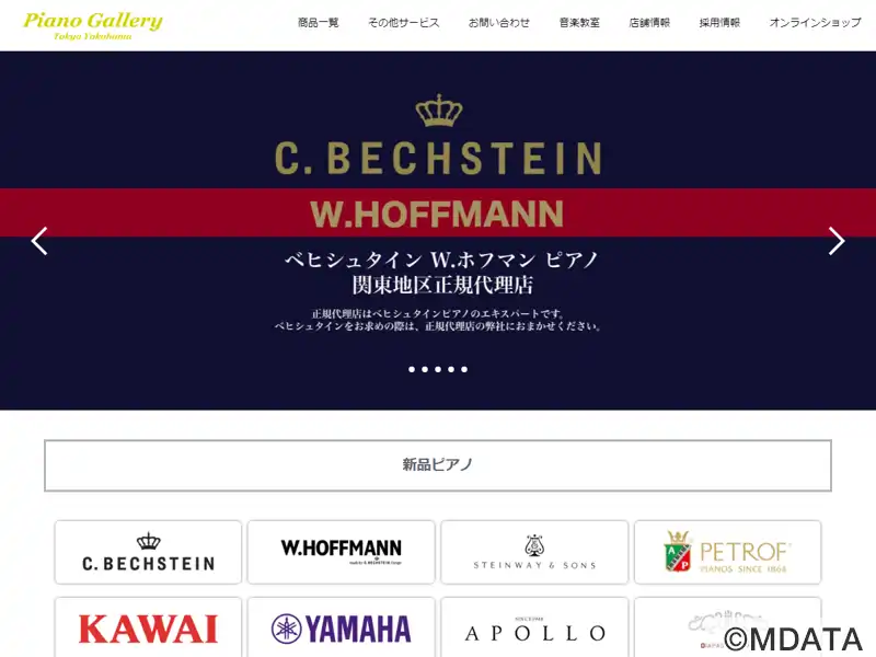 横浜市新子安にあるピアノ専門店。ヤマハ、カワイの国産ピアノから、ベヒシュタインやホフマンなどの輸入ピアノ、電子ピアノまで幅広く展示している。店内ショールームでは、国内外のブランドピアノを自由に見学・試奏でき、専門スタッフがきめ細かく対応する。ピアノ調律やメンテナンス、移動、買取、レンタルといった各種サービスも充実。併設の音楽教室では、ピアノ、バイオリン、管楽器、声楽など多様なレッスンを提供している。