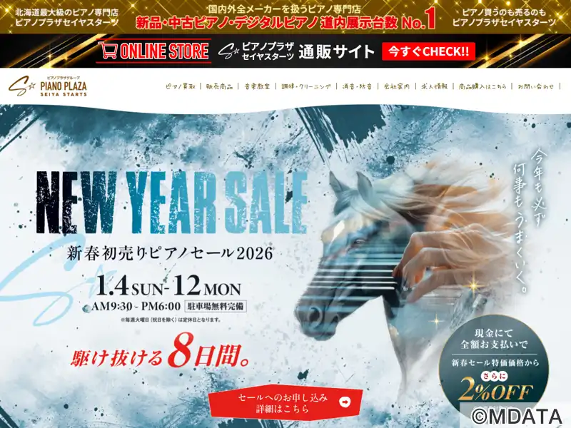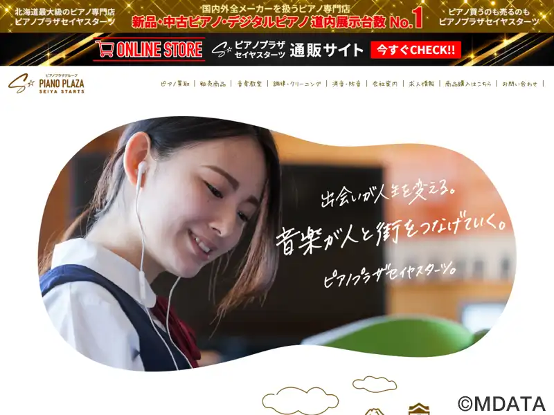 国内外全メーカーを取り揃えたピアノ専門店。新品ピアノから厳選中古再ピアノ、電子ピアノなどリーズナブルな価格で提供。多数のメーカー・機種の中からぴったりのピアノを比較、試弾して選べる道内最大のピアノ展示場。消音ピアノや防音室、調律・修理、ピアノ買取サービスのほか、音楽教室、ピアノレンタルルームのPPスタジオ(札幌駅前合同ビル7F)と山鼻レンタルスタジオ運営。