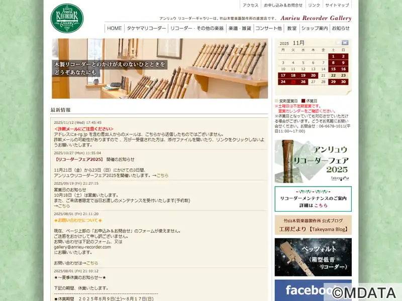 大阪市住之江区にある、竹山木管楽器製作所が直営の木製リコーダー専門店。タケヤマリコーダーをはじめ、国内外のメーカーや個人製作家によるリコーダー、楽譜や書籍を販売している。タケヤマリコーダーは、世界中の奏者に愛用される、国内木製リコーダーのトップブランドで、熟練した職人による手作りで作られている。伝統的な染色法による深みのある色合いが美しく、木材により多彩な音を奏でる。基礎とアンサンブルの教室も開講。