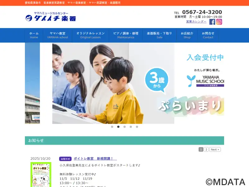愛知県津島市にある総合楽器店。ヤマハミュージカルセンターとしてピアノ、エレクトーン、バイオリン、フルートなどの楽器を展示販売。試奏可能な防音室も用意されている。また、自社で整備したリニューアルピアノも販売し、購入後のサポートも行う。音楽教室として、オリジナルレッスンや、「ヤマハ音楽教室」などを開講。レッスンは、生徒のレベルや目的に合わせてカスタマイズできる。100人収容の音楽ホールも併設している。