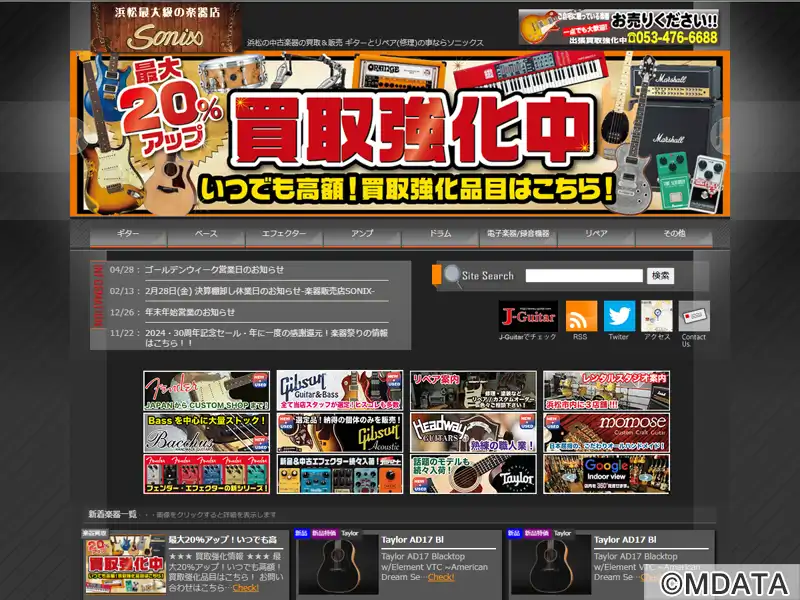 浜松市の高林バイパス沿いに、2006年にオープンした楽器店。ギターを中心とした中古楽器の販売と買い取り、リペアなどのサービスを提供する。楽器展示数は市内トップクラスで、中古・ヴィンテージから最新モデルまで、プレイヤーサイドに立った商品をセレクト。リペアブースを完備しており、修理・改造にも対応。2階にはスタジオを併設し、バンドスタジオ4部屋も完備している。駐車場あり、機材用エレベーターも備えている。