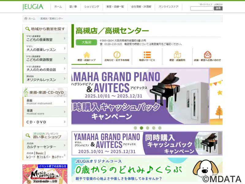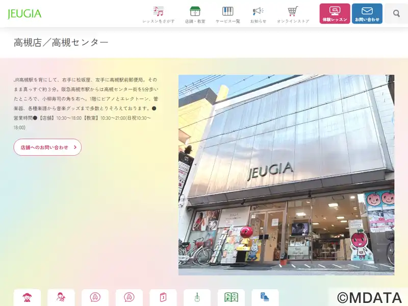 大阪府高槻市にある楽器店・ミュージックセンター。ピアノ、電子ピアノ、エレクトーン、管楽器、弦楽器などの楽器を常時展示し、楽譜、メンテナンス商品、アクセサリなども取り揃えている。また、オリジナルレッスンとして、ピアノ・エレクトーンの個人レッスン、フルート、バイオリン、ウクレレなどのコースなどを開講しています。子ども向けの「ヤマハ音楽教室・英語教室」、大人向けの「ヤマハミュージックレッスン」もあります。