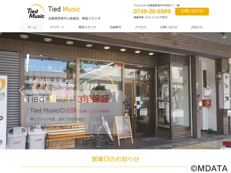 滋賀県彦根市に2015年開業した楽器店&練習スタジオ。国宝彦根城の麓に位置し、音楽業界で豊富な経験を持つスタッフが運営。店頭では新品から中古、ビンテージまで幅広い楽器や周辺機器を取り扱い、購入したギター・ベースには調整保証を付与。修理やカスタマイズも現場経験を生かした対応が可能。録音機材を備えたスタジオは練習用としても利用できる。小規模ながら機動力のある運営で、ミュージシャンの活動を支えている。