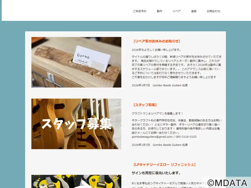 大阪市平野区加美にあるギター工房。ギター・ベースの製作、修理、カスタム、塗装を専門とし、プレイヤーのニーズに応じ、一意専心・凡事徹底をモットーに調整、フレット交換、ネック修理、リフィニッシュまで幅広く対応。ヴィンテージ風のゴールド塗装や鮮やかなカスタムカラーなど、高度な塗装技術を提供。アーティスト向けシグネチャーモデルや特注ピックアップを用いたカスタムベースも手がけ、確かな技術力で、信頼される。