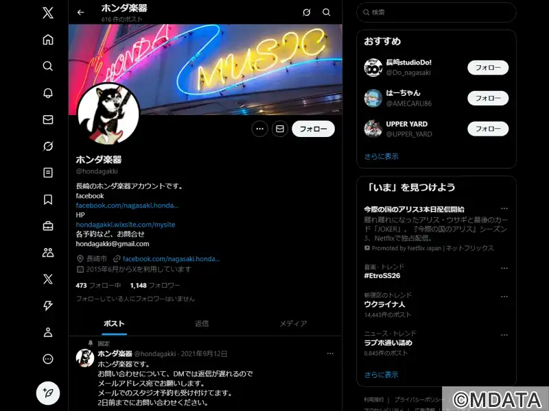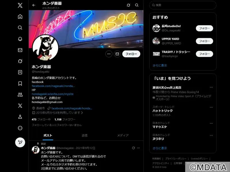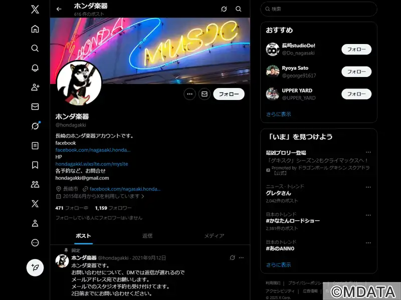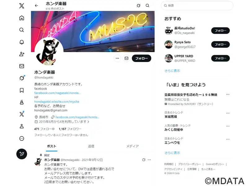 長崎市浜口町にある老舗楽器店で、ギターやベース、エフェクターなどの音楽機材を幅広く取り扱う。長年の経験と専門的ノウハウを生かしたプロのリペアサービスも提供。地下には4部屋のバンドリハーサルスタジオ、3階には100人収容のライブスペース「アストロホール」を併設。DJセット、ステージピアノを完備し、ライブや楽器セミナーなども開催され、音楽発信地としての役割を担っている。駐車場完備でアクセスも便利。