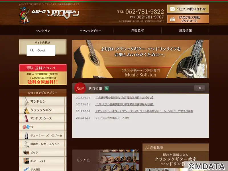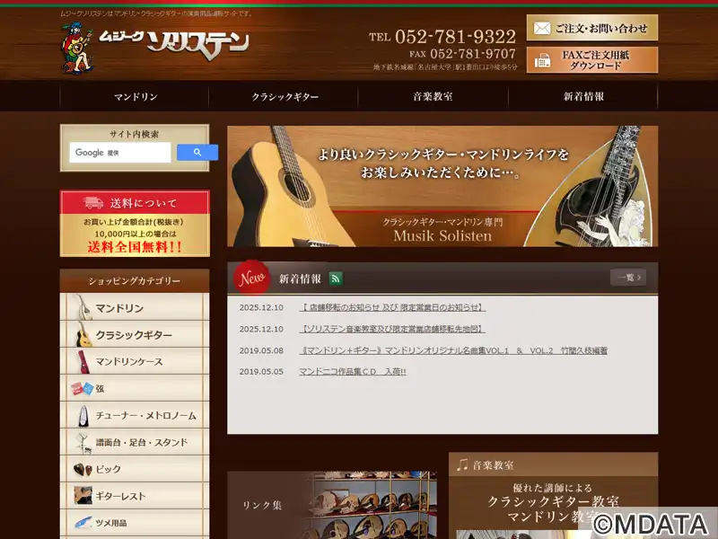 愛知県名古屋市にあるマンドリンとクラシックギターの専門店。高級手工品から入門用まで、幅広い価格帯のマンドリンやクラシックギターを取り揃え、弦やピック、楽譜、CDなどの関連用品も扱う。専門店ならではの知識を活かした丁寧なアドバイスが受けられる。併設の音楽教室では、マンドリン科・クラシックギター科の個人レッスンを開講。本マンドリン独奏コンクールや国際舞台で活躍する講師が、初心者から上級者まで対応する。